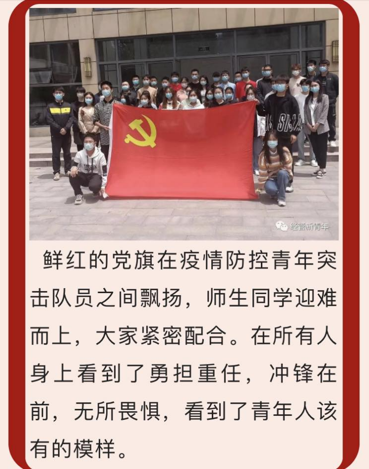 近期,疫情防控形势严峻,按照学校统一部署,5月3日晚,学院立即转入疫情防控战时紧急状态,学院书记、院长和部分中层干部、全体辅导员在23点前全部到岗,随时待命。5月6日,学校启动全封闭管理,学院及时传达会议精神,成立书记、院长为政委和指挥长,其它中层干部、系部主任、工会、辅导员代表组成的校内教工突击队共10人,全力以赴,奋战一线,安排部署疫情防控工作。