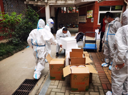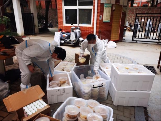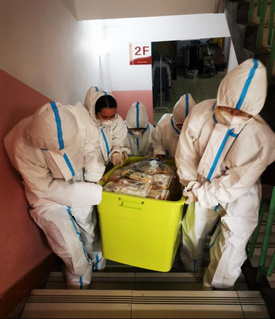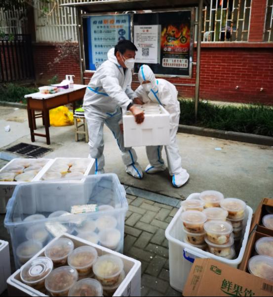 pg游戏电子模拟器共有15名教职工志愿者驻校工作,承担北苑2号楼和6号楼共计1974名学生的网格化管理任务,每天为学生送餐、组织并协助核酸检测以及生活物资、药品配送等工作。送餐看似简单的工作,却需用心才能做好,对接楼层长和餐厅负责人统计好每一餐数量,争取以最快的速度把热乎乎的饭菜送到学生手中。
