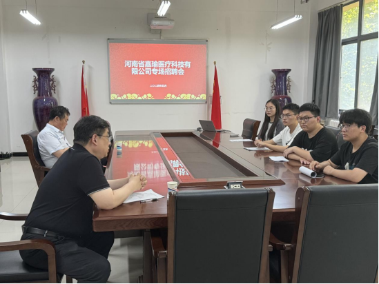 5月28日下午,河南省嘉瑜医疗科技有限公司赴pg游戏电子官网召开专场招聘会,河南省嘉瑜医疗科技有限公司经理刘成福现场与pg游戏电子官网前来应聘的学生进行了深入交流。