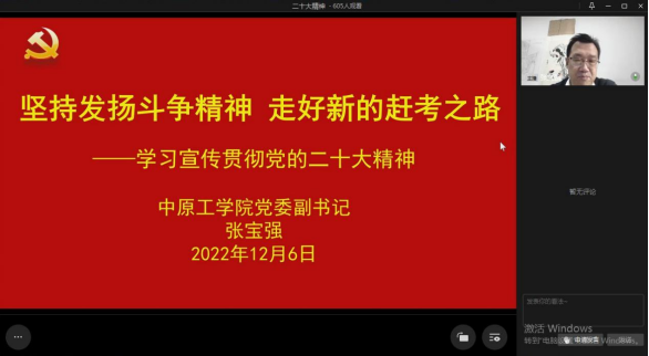 为深入学习宣传贯彻党的二十大精神,2022年12月6日,校党委副书记张宝强以企业微信直播的方式为pg游戏电子官网做学习党的二十大精神专题报告,学院600余名师生聆听了报告。