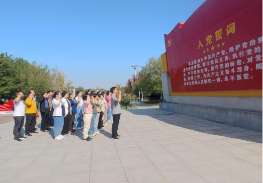 在初心广场,党委书记李向东带领全体党员郑重举起右拳,重温入党誓词,铿锵有力的宣誓声表达了对党的无限忠诚与热爱,党员们牢记誓言,自觉肩负起新时代的责任。
