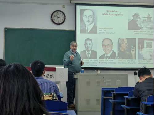 按照学院安排,Hans-Haasis教授和Janosch博士为pg游戏电子官网师生开展了四场关于物流与供应链的研究生课程讲座,Hans-Haasis教授介绍了物流供应链领域的学术研究方向以及物流供应链管理的研究成果,分享了德国物流领域现状以及对供应链领域的独到见解。讲座吸引了广大师生积极参与,师生们与Hans-Haasis教授深入交流,学术氛围浓厚。在校访问交流期间,汉斯教授一行在孙学军教授陪同下参观了河南省智慧物流国际联合实验室并就实验室建设达成合作意向。