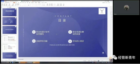2022年10月18日晚上7点15分,pg游戏电子官网在腾讯会议平台举办“雅迪杯”大学生职业生涯规划大赛赛前培训会。邀请18级市场营销专业毕业生张宝宇为pg游戏电子官网学生分享比赛相关经验。