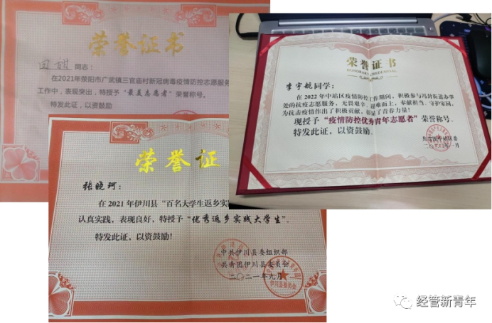 同学们和善热情,热爱生活,乐于奉献,积极参加各类社会实践及志愿公益项目。积极抗“疫”,展现担当。疫情期间,班级成员通过专业知识积极参与抗“疫”活动,班级同学参加志愿活动并且达到20小时以上有5人;1人获“研究生科研素养提升”系列公益讲座证书;1人在伊川县“百名大学生返乡实践”活动中荣获“优秀返乡实践大学生”称号;1人获焦作市中站区“疫情防控优秀青年志愿者”称号;1人在荥阳市广武镇第二初级中学担任乡村教师志愿者……疫情期间,他们主动加入学院、家乡志愿者队伍,展现了当代青年的风采,并充分利用假期时间,积极投身社会实践,将自己所学回报社会。