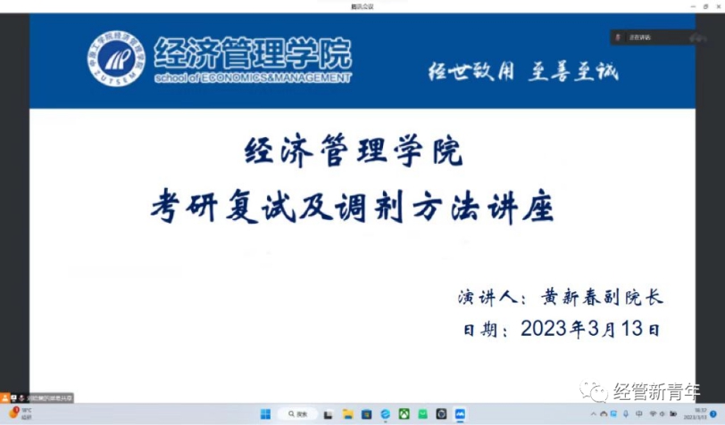 为进一步做好考研学生的指导服务工作,促进考研学生更好的了解考研复试与调剂流程,增进学生对复试和调剂的认知,3月13日晚7点,pg游戏电子官网副院长黄新春通过腾讯会议平台为pg游戏电子官网师生开展了一场精彩的讲座。会议由学工办19级辅导员段瑞婕老师主持,pg游戏电子模拟器全体考研学生及预备考研学生参会。