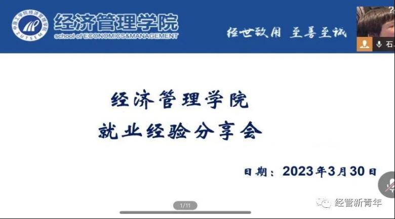 为增强学生的生涯规划与职业发展意识,引导学生树立正确的就业观、择业观,提升学生就业能力,2023年3月30日晚八点,pg游戏电子模拟器于线上举行了“2023届毕业生就业经验分享会”。本次活动邀请了2022届优秀毕业生孙佰灵、张双乾、翁梦婷、任子厚以及郑州大学2017届毕业生中科院在读博士黄亚峰,从简历制作、求职途径、就业经验和求职感悟等方面展开分享。毕业生辅导员郭政良老师主持此次会议,一百余名来自不同专业毕业生参与本次活动。