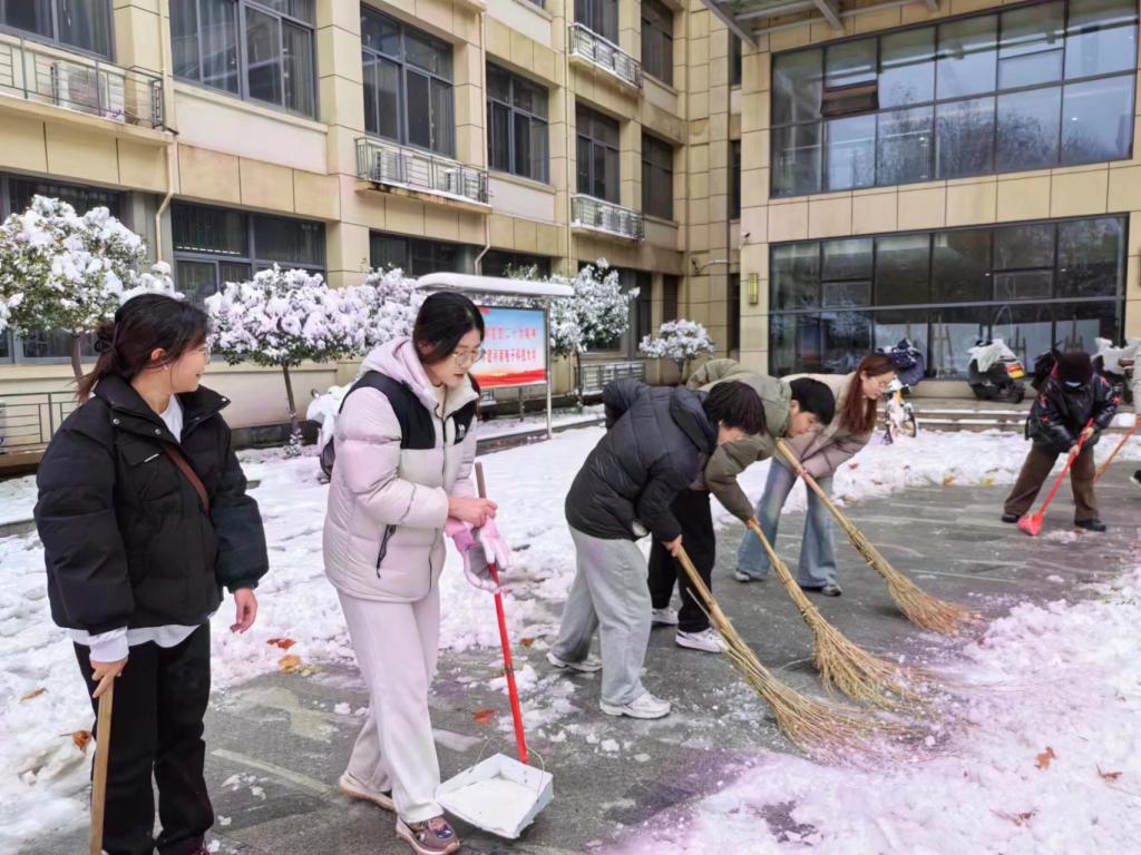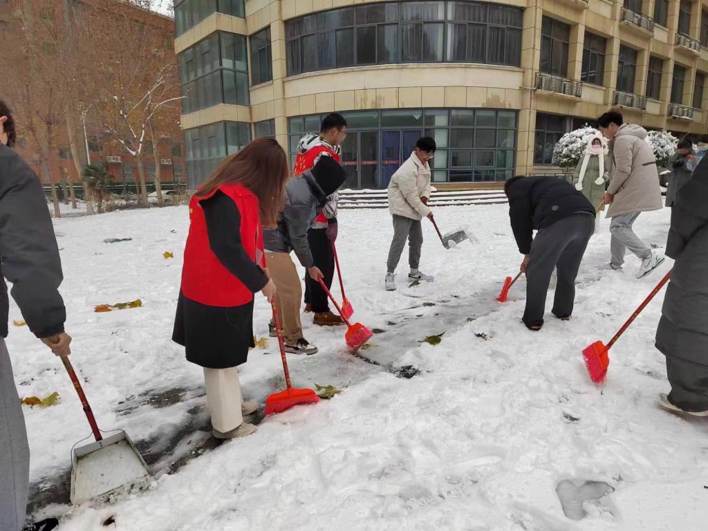 “忽如一夜春风来,千树万树梨花开。”飘落的雪花将校园装饰成独具一格的雪城。2023年12月11日,为了保障道路的畅通和同学们出行的安全,pg游戏电子模拟器学生党支部书记杨文乐、陈金、郭政良带领本科生学生党员积极开展了扫雪除冰保畅通工作。