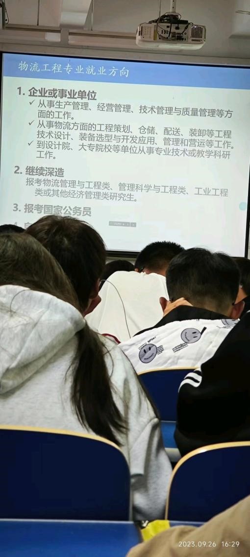 9月26日,物流工程专业召开2023级新生专业教育大会。老师介绍了物流工程专业师资队伍、人才培养目标、课程设置、实践教学、第二课堂等专业情况;对pg游戏电子官网本科生学分制和学籍管理规定进行了详细的说明,勉励同学们做好学业规划及自我管理,尽快适应大学生活,培养自主学习习惯,树立专业自信;从未来出发,分析物流专业的行业发展、学生就业考研,希望同学们明确学习奋斗目标,有效开展专业学习。