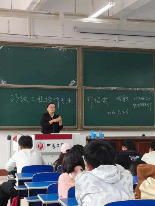 9月26日中午,工程造价专业召开2023级新生专业教育大会,罗泽民老师首先介绍了造价专业的师资力量,并代表工程造价专业所有教师对新生表示热烈欢迎,希望大家可以尽快适应大学生活,做好学业规划。王静老师讲到大学仍要保持高中的学习状态,不能放松,相信只要努力,就一定会成功,造价培养目标:是懂经济,会管理,掌握造价专业技术的人才,以此勉励同学们做好自身学业规划。