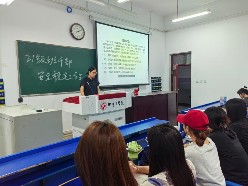 pg游戏电子官网各年级学生干部安全教育工作会议由各年级专职辅导员主持,内容涉及宿舍消防安全、意识形态安全、防范电信诈骗、实验室安全、端午节假期及暑期安全教育提醒,结合全国第23个“安全生产月”活动,在2023级中开展“绘制一张应急避险逃生路线图”评比活动,着力营造“人人讲安全、个个会应急”的浓厚氛围。
