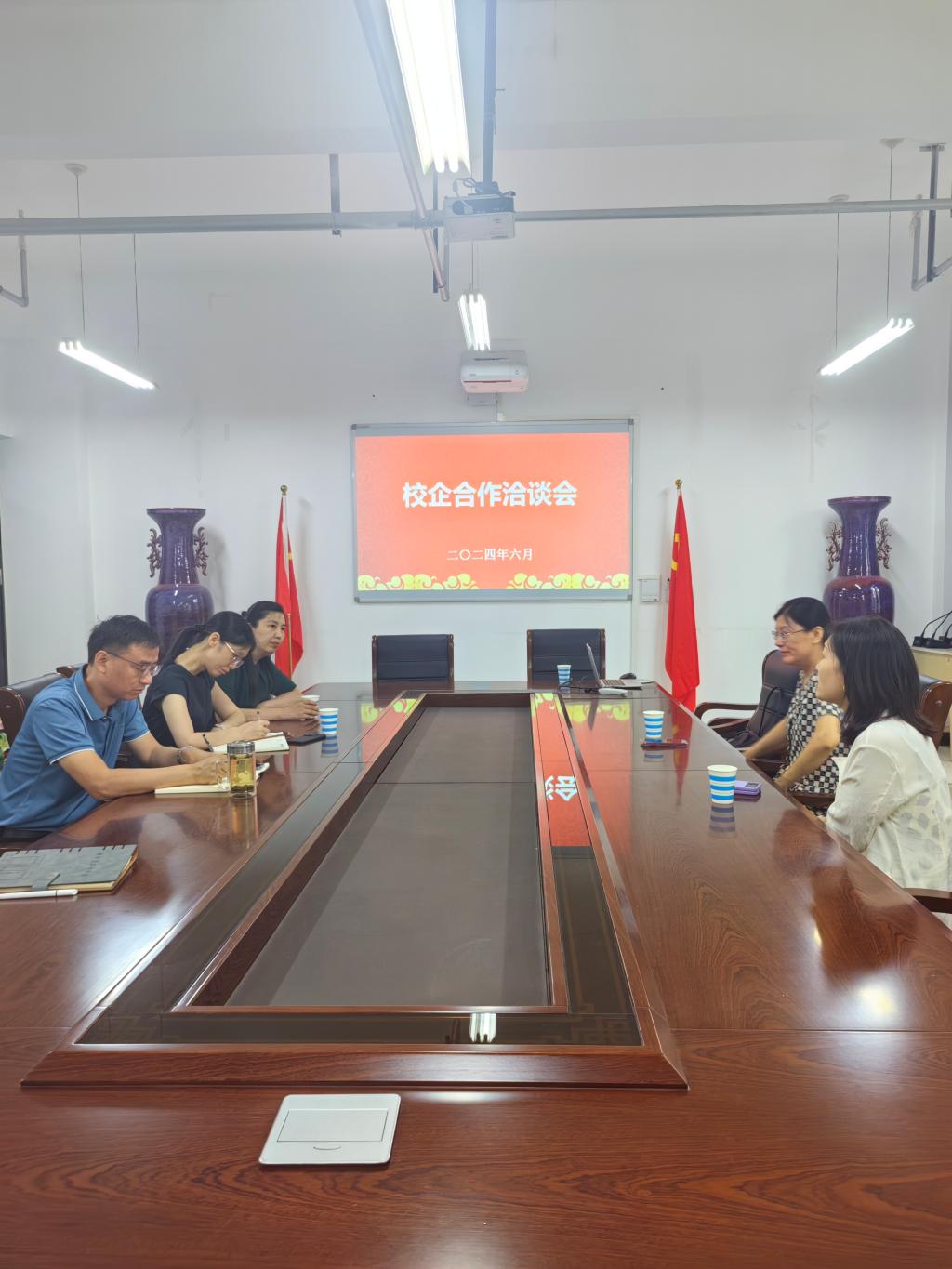 2024年6月24日,我院与郑州鸿街商业管理有限公司举行合作洽谈会。参加此次会议的有郑州鸿街商业管理有限公司代表邹雪慈、学院党委书记李向东、党委副书记王琳、市场营销系副主任孙小丽、市场营销系教师孙玮,学生工作办公室主任杨文乐。