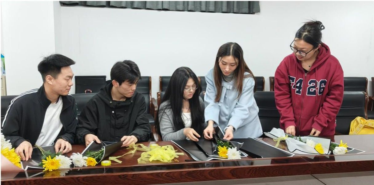 活动前一天,在支部书记杨文乐老师的带领下,学生党员们在3号组团楼开展插花活动。大家精心制作寄托哀思的花束,每一朵鲜花、每一次修剪都饱含着对革命先烈的崇敬之情,为此次缅怀活动做足准备。