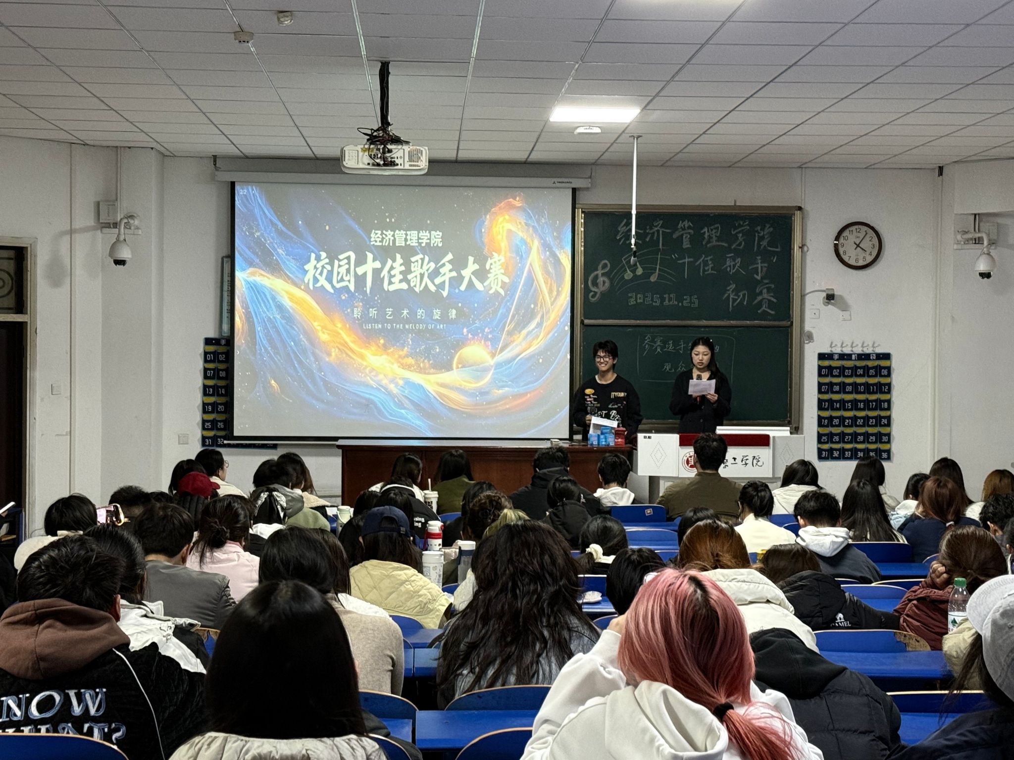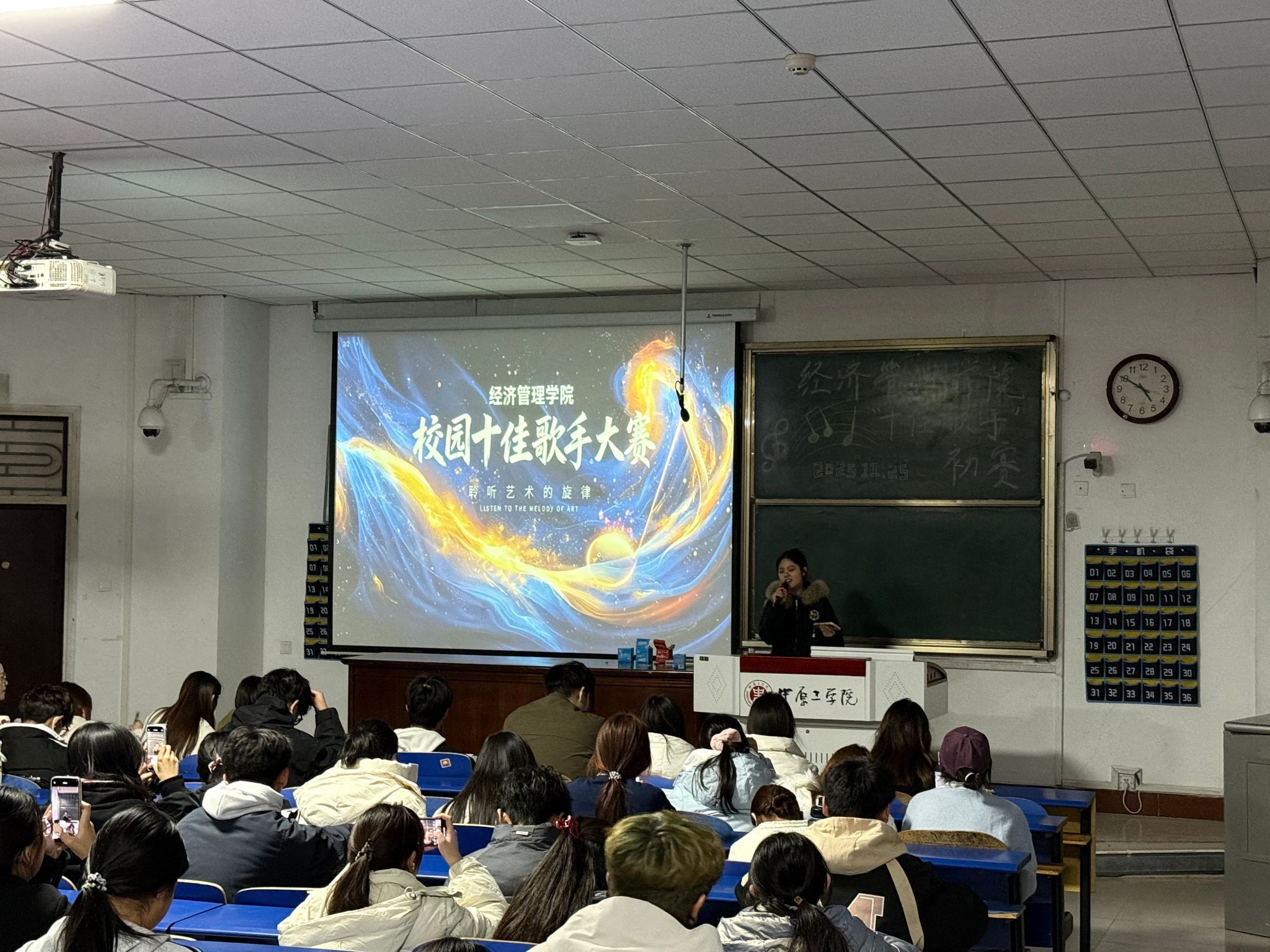 11月25日,pg游戏电子模拟器校园十佳歌手大赛初赛在龙湖校区四号教学楼101室火热开启。本次大赛以“青春飞扬 音你而唱”为主题,吸引了数百名怀揣音乐梦想的学子踊跃报名,最终多位选手站上初赛舞台,用歌声点燃了冬日的激情,为现场观众带来了一场精彩纷呈的视听盛宴。