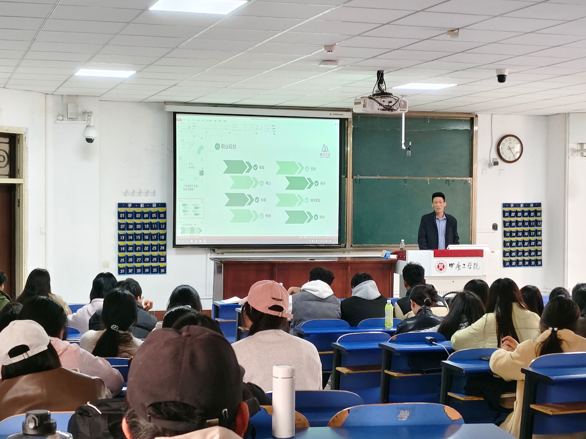 本次讲座整体分为四大板块:职业规划、考研流程院校及专业选择、就业方向及备考。通过与在场学生的互动交流,了解到大家对未来职业的多元选择,如考公、进国企、当大学老师等。闫阳阳结合当前就业形势,深入分析了不同职业路径的利弊,强调考研是当下较为优质的选择之一。