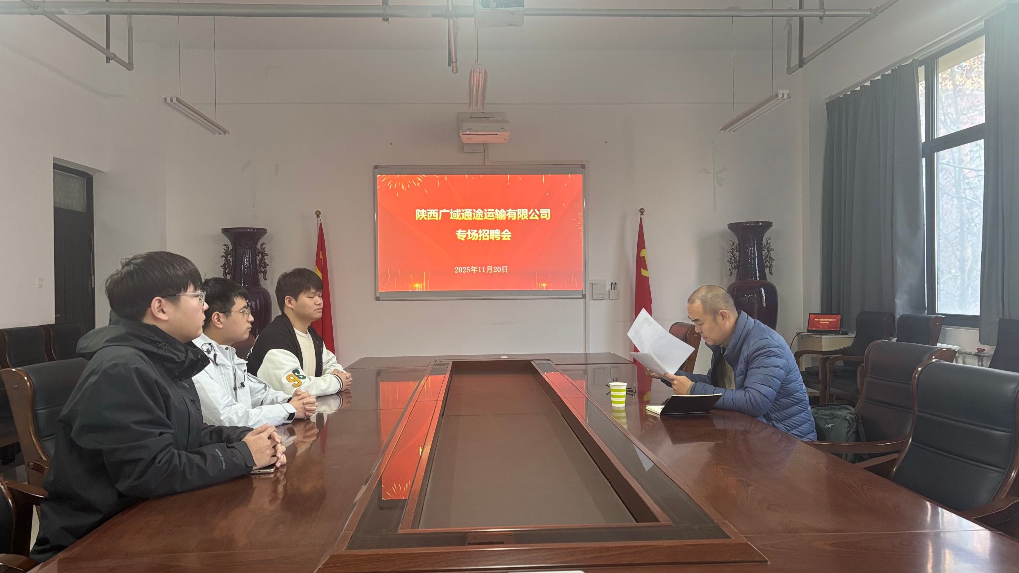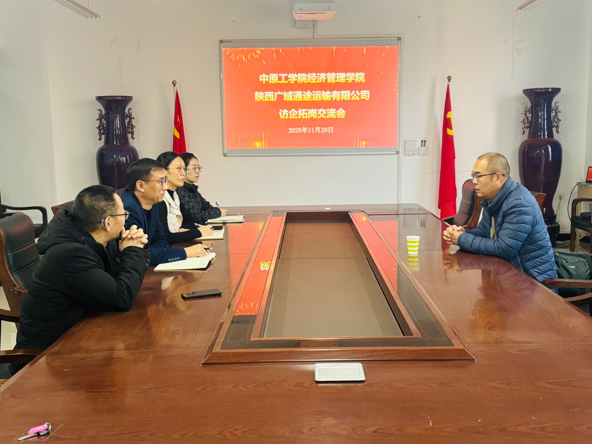11月20日,pg游戏电子官网与陕西广域通途运输有限公司在3号组团楼A306会议室成功举办访企拓岗交流会,并于交流会结束后进行了专场招聘会。陕西广域通途运输有限公司法人姚远,学院党委书记李向东、党委副书记王琳、物流工程系教师王小黎、2022级专职辅导员吴笑及2022级物流专业学生代表参加。