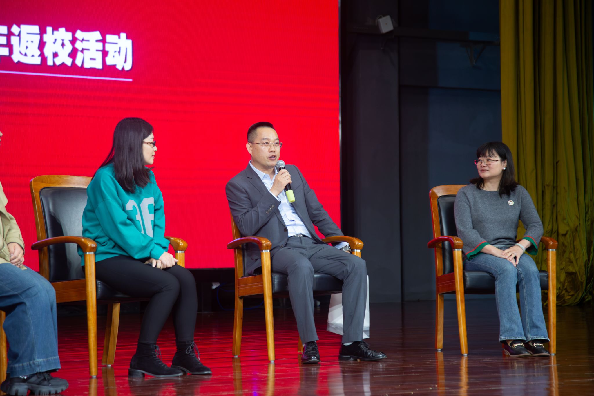 活动第二篇章:“薪火相传,共促发展”,校友论坛活动。校友代表、康桥悦生活服务集团有限公司副总裁刘汉星主持,与崔敬尊、周燕、郭惠艳、丁亚萍、潘海英、李战争六位校友,从10年前的愿望谈起,讲述了个人成长与发展经历,分享人生感悟、职业路径及发展规划,鼓励在校学生树立目标、努力拼搏,过上理想生活。校友代表、上海郑阳公关策划有限公司总经理郑阳主持,与吕和召、刘志刚、王向阳、左飞、周常宝、孔祥飞六位校友共同从区域发展、行业发展角度,畅谈机遇与挑战,对在校生毕业求职和创业进行了指导。在互动环节,与会学生踊跃提问,就内心追求与职业发展选择、自我认知与核心优势培养、理论知识与技能培养等问题向学长学姐探讨,现场氛围温馨热烈。