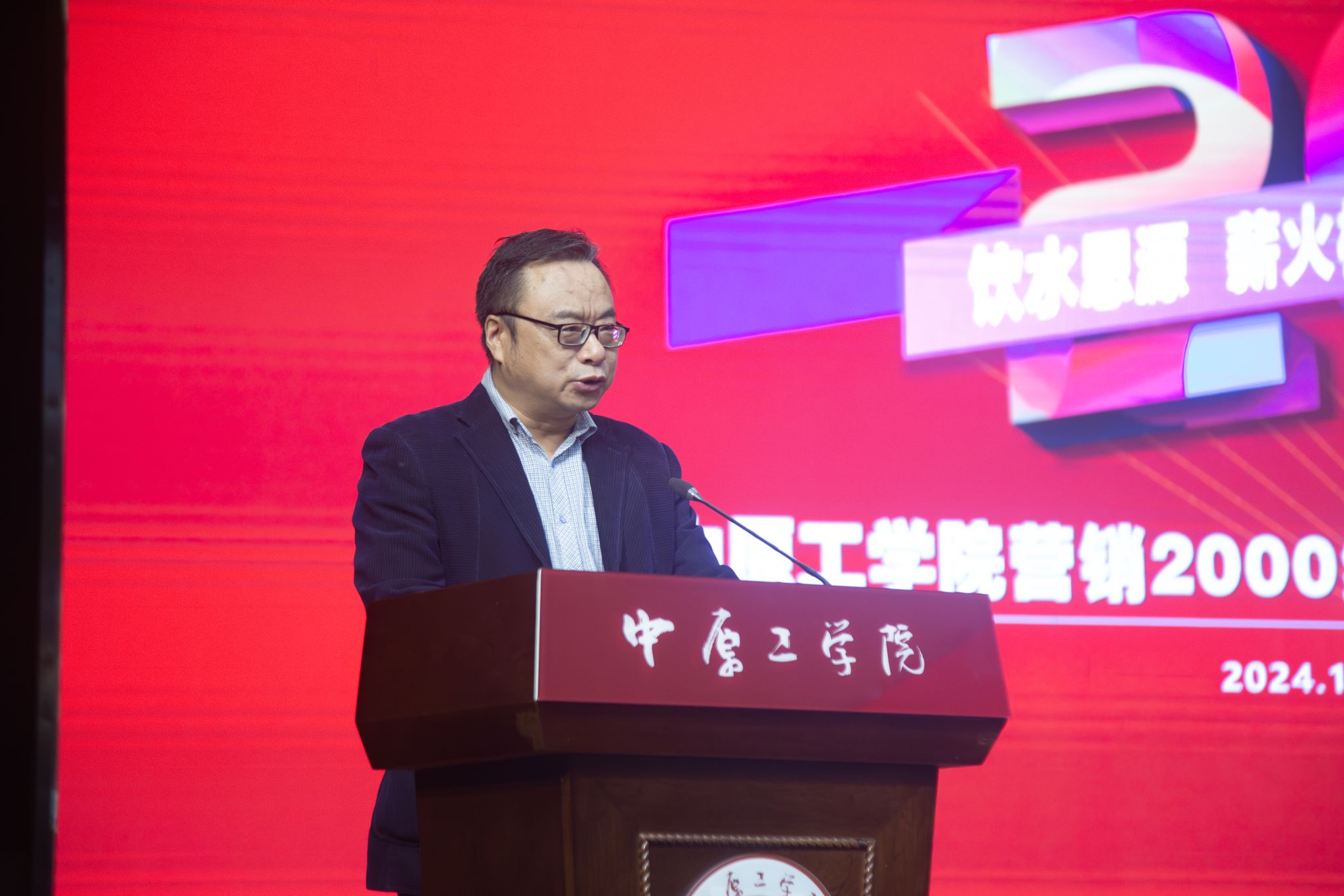活动分为两个篇章,首先是“饮水思源,感恩母校”,“金博奖学金”捐赠仪式。仪式由营销2000级原辅导员刘国存主持。赵志泉致欢迎词,代表学院全体教职工对营销2000级校友重返母校表示热烈欢迎,向校友们一直以来关心支持学校、学院事业发展表示衷心感谢。赵志泉介绍了学校和学院近年来的发展情况。他讲到,学院的实习基地建设、创新创业和就业等多项工作都得到了校友的支持,这次校友捐赠设立“金博奖学金”,并受聘校外创新创业导师、校外辅导员,再次体现出校友对学校、学院事业发展的热心、关心和爱心。