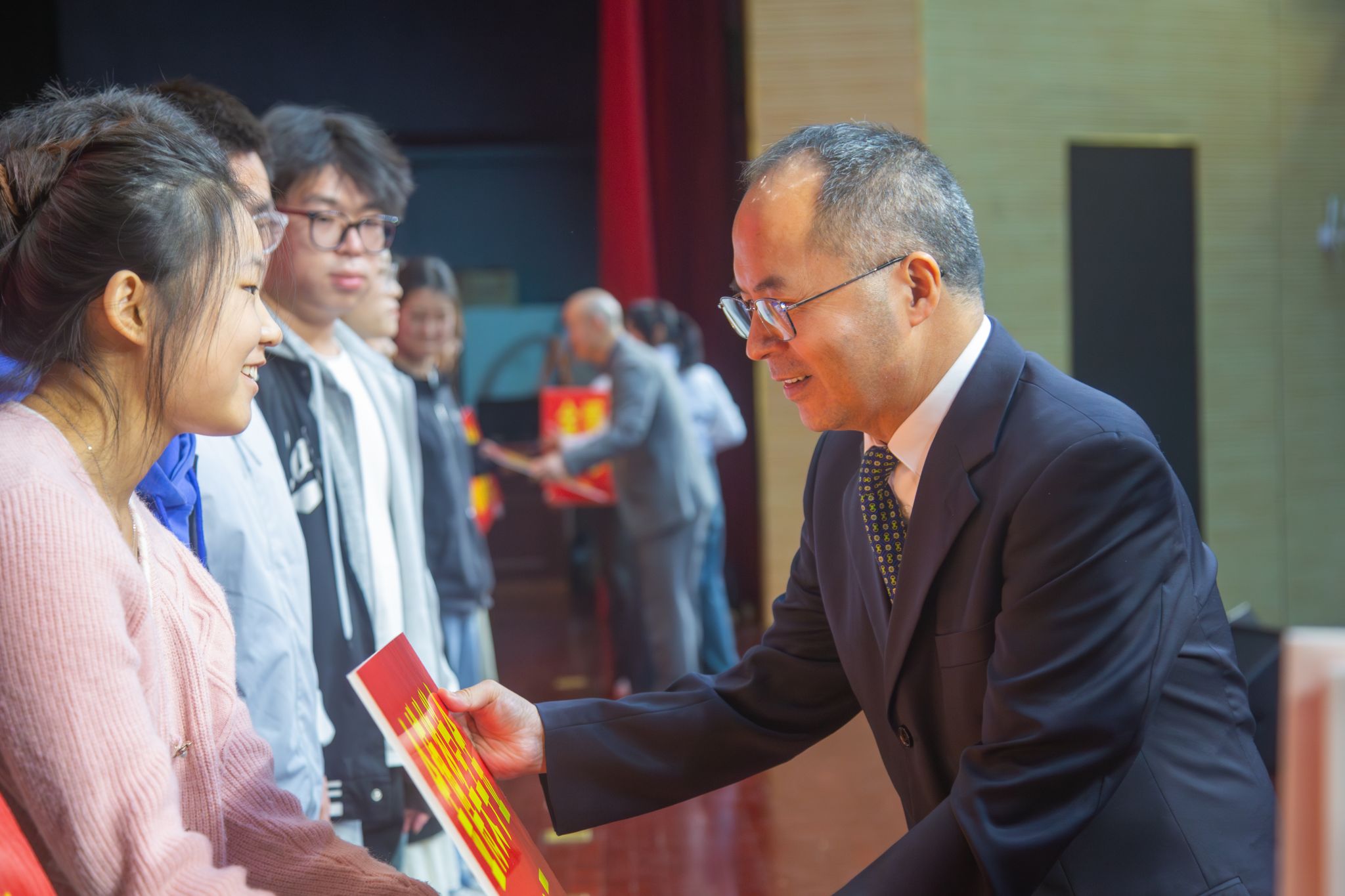 营销2000级校友、北京金博高德教育科技有限公司董事长张向涛向pg游戏电子官网捐款100万设立“金博奖学金”,校长夏元清代表学校接受捐赠,并与张向涛共同向50名获奖学生颁发“金博奖学金”。宋晓炜为北京金博高德教育科技有限公司、郑州市超前涂料有限公司进行校外实习基地授牌。方敬永为常州市武进区委政法委督查科科长李世锋、开封市禹王台区人民检察院第二检察部一级检察官关曙光、信阳珠江村镇银行平桥支行行长孟献超、康桥悦生活服务集团有限公司副总裁刘汉星颁发校外辅导员聘书。杨为学为北京金博高德教育科技有限公司董事长张向涛、上海郑阳公关策划有限公司总经理郑阳;郑州楷励教育科技有限公司总经理李新浩颁发校外创新创业导师聘书。