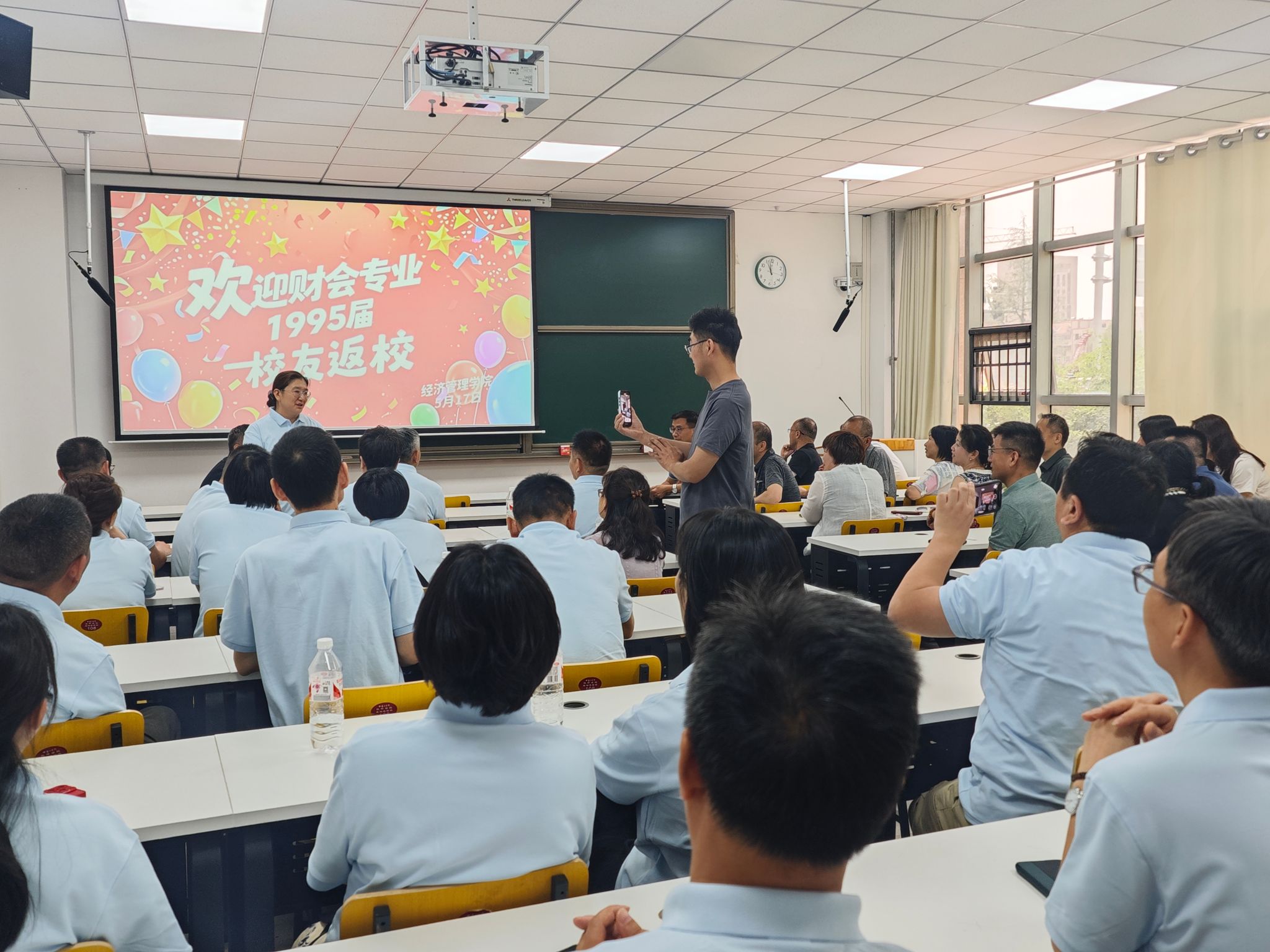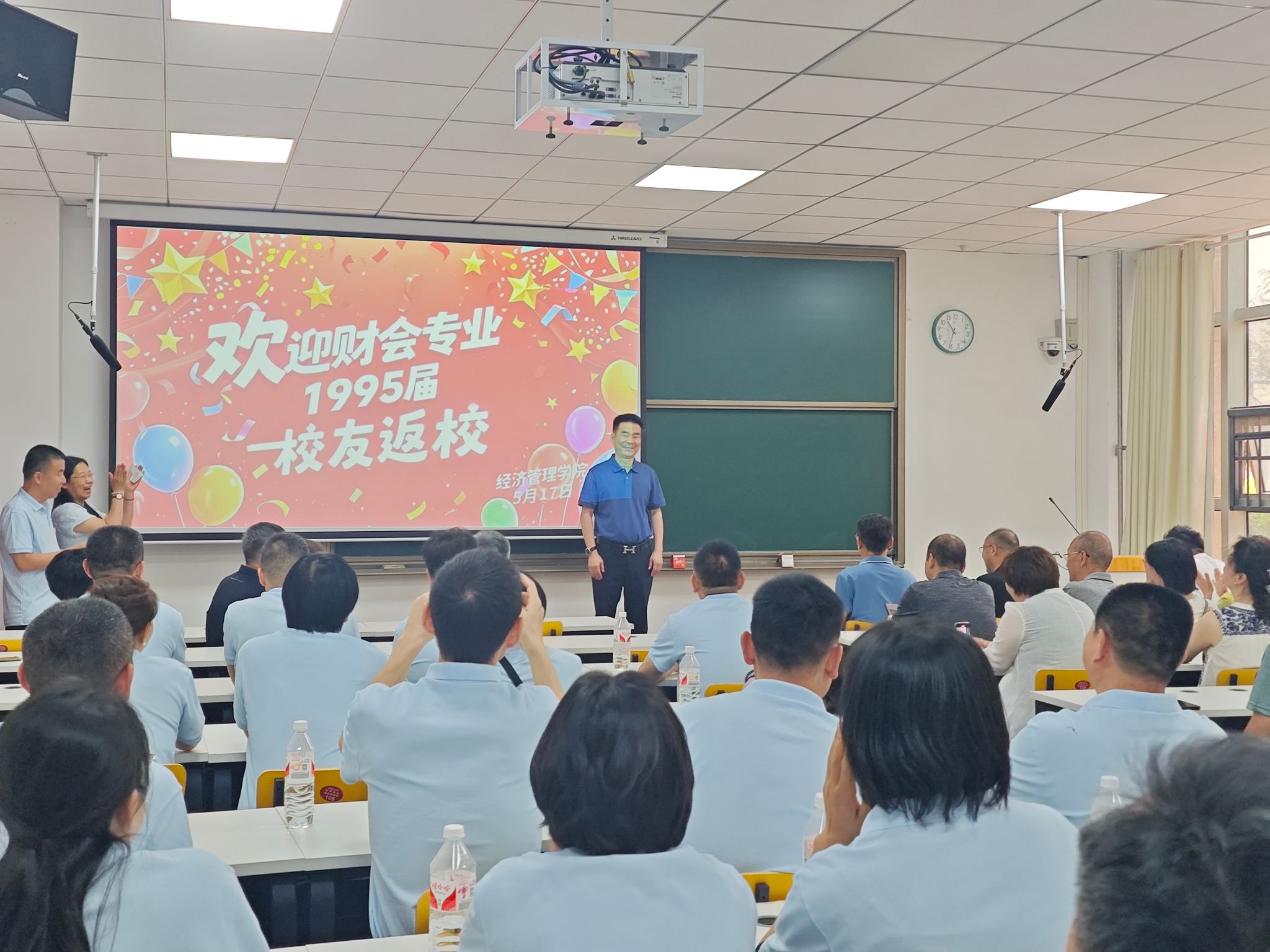 5月17日,pg游戏电子官网1995届财会专业校友共计68人毕业30年后重返母校,开展“重温青春记忆,共叙师生情谊”系列活动,pg游戏电子模拟器党委书记李向东、团委书记郭姗,教师代表李惠杰,郑州市校友会常务副会长谭志刚等参加活动。